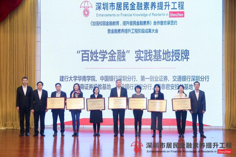 在隨后的授牌、授證儀式中,深圳交行作為青少年和居民進行金融實踐的合作機構,被授予了“百姓學金融”實踐基地和“愛心支持單位”榮譽稱號。