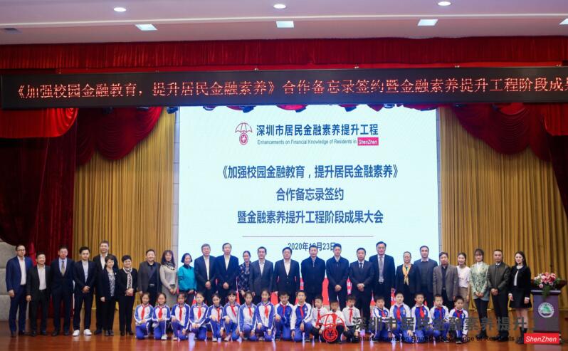 深圳新聞網(wǎng)·見圳客戶端2020年12月29日訊 近日,由中國人民銀行深圳市中心支行、深圳銀保監(jiān)局、深圳證監(jiān)局、深圳市地方金融監(jiān)督管理局、深圳證券交易所、深圳市教育局、福田區(qū)人民政府主辦,深圳市民政局協(xié)辦的《加強校園金融教育,提升居民金融素養(yǎng)》合作備忘錄簽約暨金融素養(yǎng)提升工程階段成果大會在福田實驗僑香學校舉行。深圳市政府、相關機構領導,市各金融機構代表、市區(qū)中小學校領導、街道社區(qū)負責人以及僑香學校的師生們等逾200人出席了大會。