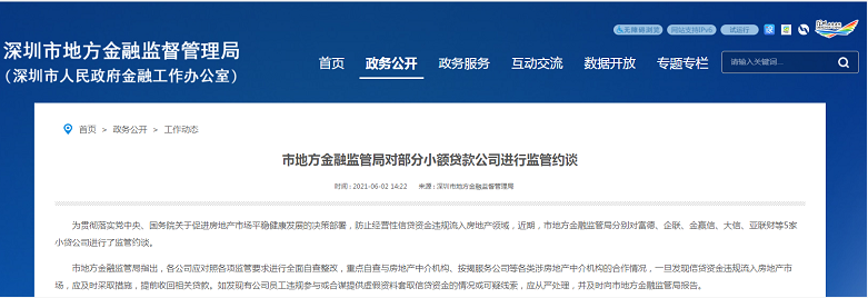 深圳新聞網(wǎng)6月3日訊 (湯莎)為貫徹落實黨中央、國務(wù)院關(guān)于促進(jìn)房地產(chǎn)市場平穩(wěn)健康發(fā)展的決策部署,防止經(jīng)營性信貸資金違規(guī)流入房地產(chǎn)領(lǐng)域,6月2日,記者從深圳市地方金融監(jiān)督管理局獲悉,近期,該局對轄內(nèi)9家主要從事贖樓擔(dān)保業(yè)務(wù)的融資擔(dān)保公司和富德、企聯(lián)、金贏信、大信、亞聯(lián)財?shù)?家小額貸款公司進(jìn)行了監(jiān)管約談。