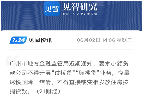 6月1日,央行發(fā)布《反洗錢法(修訂草案公開征求意見稿)》,意見稿明確,特定非金融機(jī)構(gòu)應(yīng)參照金融機(jī)構(gòu)相關(guān)要求履行反洗錢義務(wù),對于特定非金融機(jī)構(gòu)的定義,征求意見稿也明確,包括提供房屋銷售、經(jīng)紀(jì)服務(wù)的房地產(chǎn)開發(fā)企業(yè)或者房地產(chǎn)中介機(jī)構(gòu)。廣州則在6月2日也下發(fā)通知,要求小額貸款公司不得開展“過橋貸”“贖樓貸”業(yè)務(wù)。