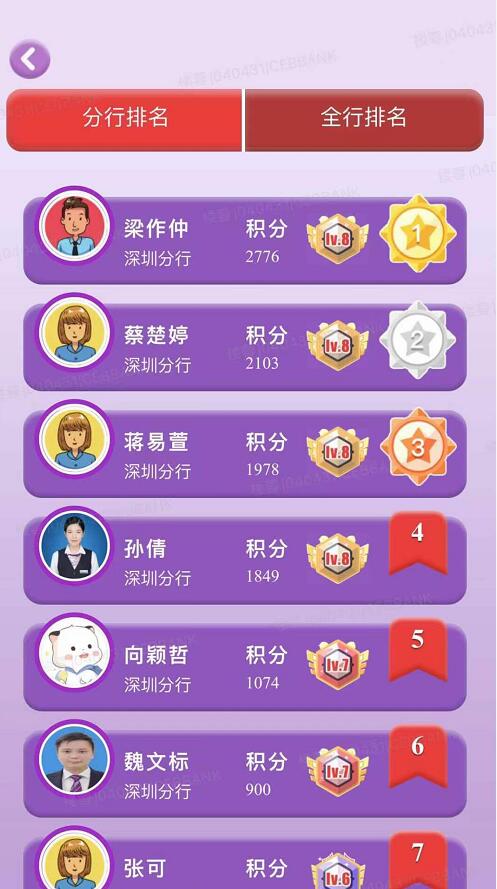 此次活動取得良好效果,有效提高員工消費者權(quán)益保護意識與能力。滄海橫流顯砥柱,萬山磅礴看主峰。深圳分行熙龍灣支行梁作仲、海濱支行蔡楚婷、華強支行蔣易萱、寶城支行孫倩、陽光服務(消保)辦公室向穎哲、民塘支行魏文標、寶城支行張可、華強支行蔡靜嫻、寶新支行郭曉冀、民塘支行彭慧妮的最終比賽戰(zhàn)績排名分行前十位置。分行陽光服務(消保)辦公室、零售金融部、民塘支行、南海大道支行、寶新支行、八卦嶺支行、筍崗支行、水貝支行、南灣支行、羅湖支行、布吉支行、福田支行、中心區(qū)支行實現(xiàn)全員參與比賽,表現(xiàn)也十分突出。