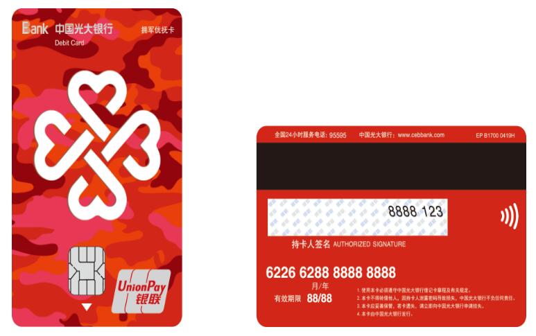在金融服務(wù)產(chǎn)品方面,光大銀行面向軍人、退役軍人發(fā)行“擁軍優(yōu)撫”專屬聯(lián)名卡,優(yōu)撫對象可以憑軍官證、士兵證、退役證等有效證件在該行營業(yè)網(wǎng)點柜臺辦理賬戶開立并免收卡片工本費,“擁軍優(yōu)撫”專屬銀行卡在全國統(tǒng)一實現(xiàn)兩個專屬服務(wù)和十項優(yōu)惠政策。