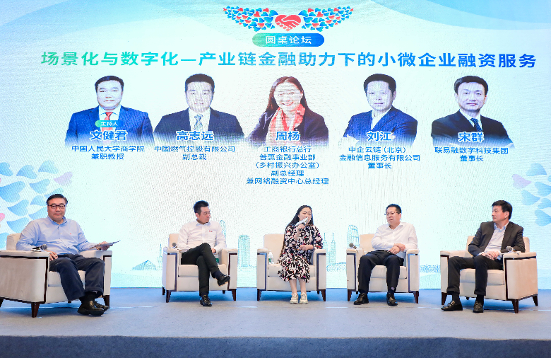 在論壇對(duì)話環(huán)節(jié),工行總行普惠金融事業(yè)部副總經(jīng)理兼網(wǎng)絡(luò)融資中心總經(jīng)理周楊、核心企業(yè)代表中國(guó)燃?xì)饪毓捎邢薰靖笨偛酶咧具h(yuǎn)、供應(yīng)鏈服務(wù)機(jī)構(gòu)代表中企云鏈(北京)金融信息服務(wù)有限公司董事長(zhǎng)劉江和聯(lián)易融數(shù)字科技集團(tuán)董事長(zhǎng)宋群共同探討了如何以融合和創(chuàng)新方式,通過(guò)產(chǎn)業(yè)鏈金融助力小微企業(yè)融資服務(wù),互相交換在產(chǎn)業(yè)鏈金融發(fā)展方面的經(jīng)驗(yàn)和智慧。