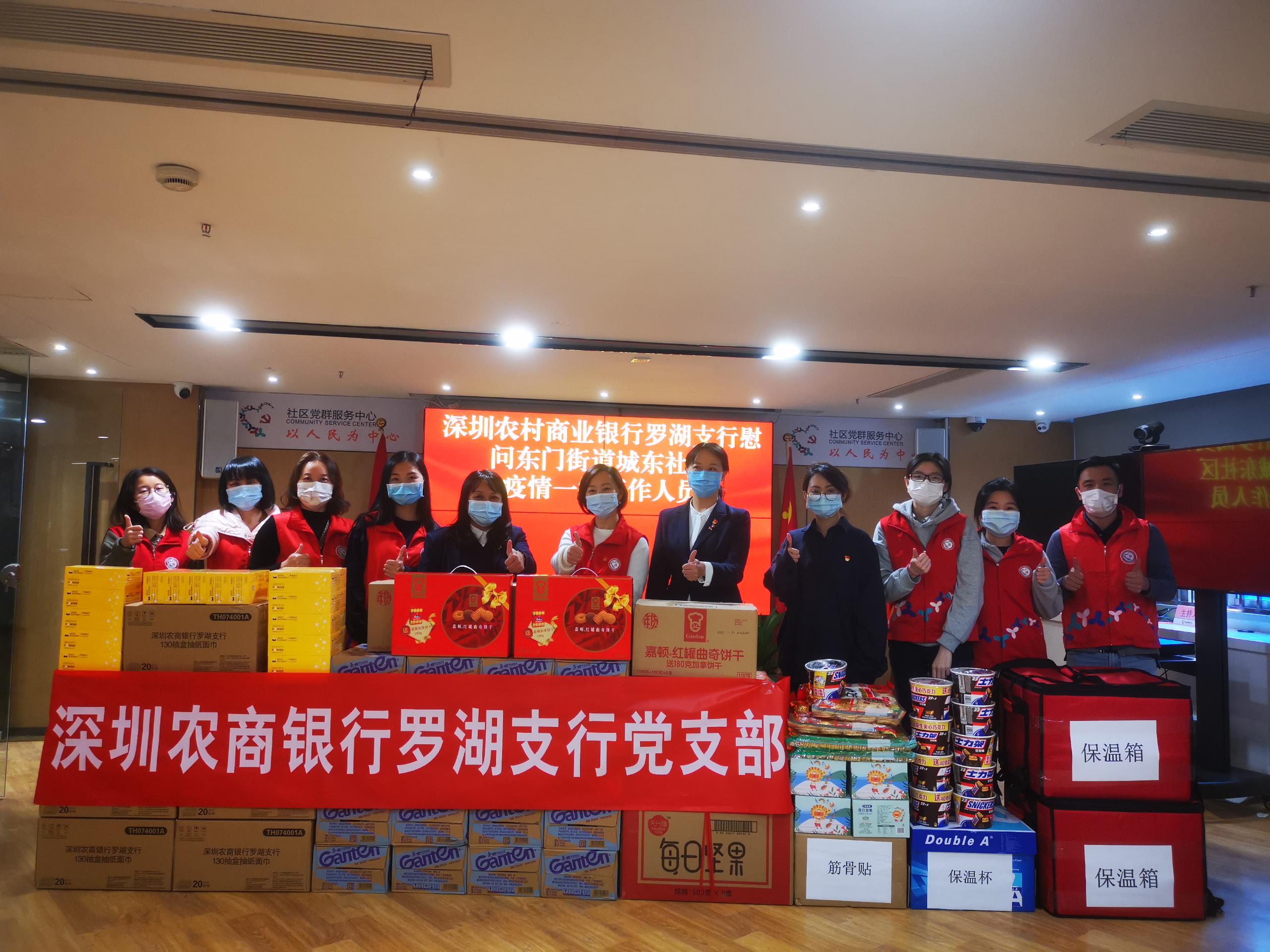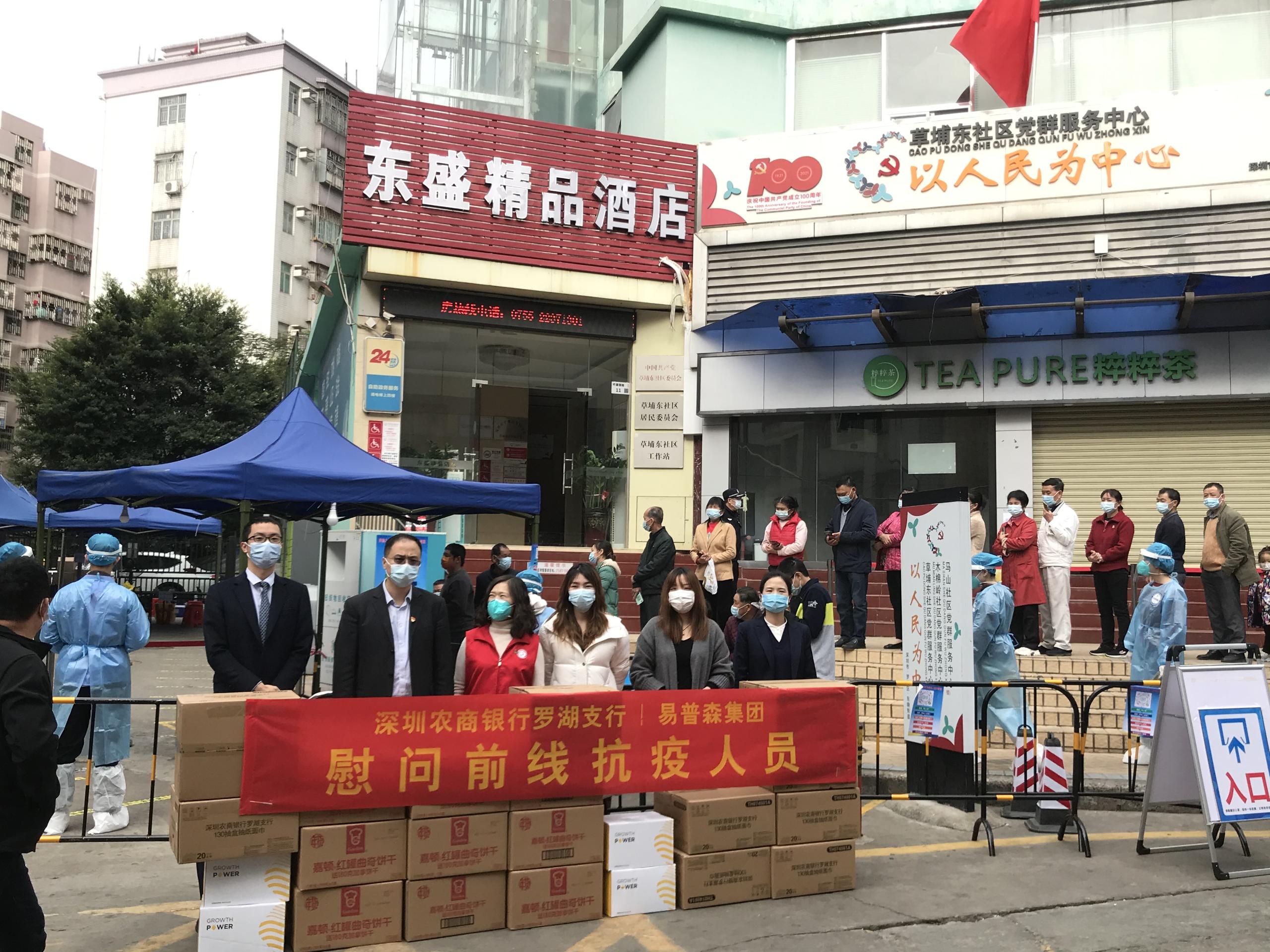 此次慰問活動(dòng)的開展也得到了深圳農(nóng)商銀行羅湖支行企業(yè)客戶的積極響應(yīng)。易普森集團(tuán)、深圳市富寶東門市場(chǎng)管理有限公司在獲悉深圳農(nóng)商銀行此次活動(dòng)后,積極響應(yīng),表示要為羅湖區(qū)做一份貢獻(xiàn),于是與該行攜手為羅湖區(qū)前線抗疫人員送去物資和問候。