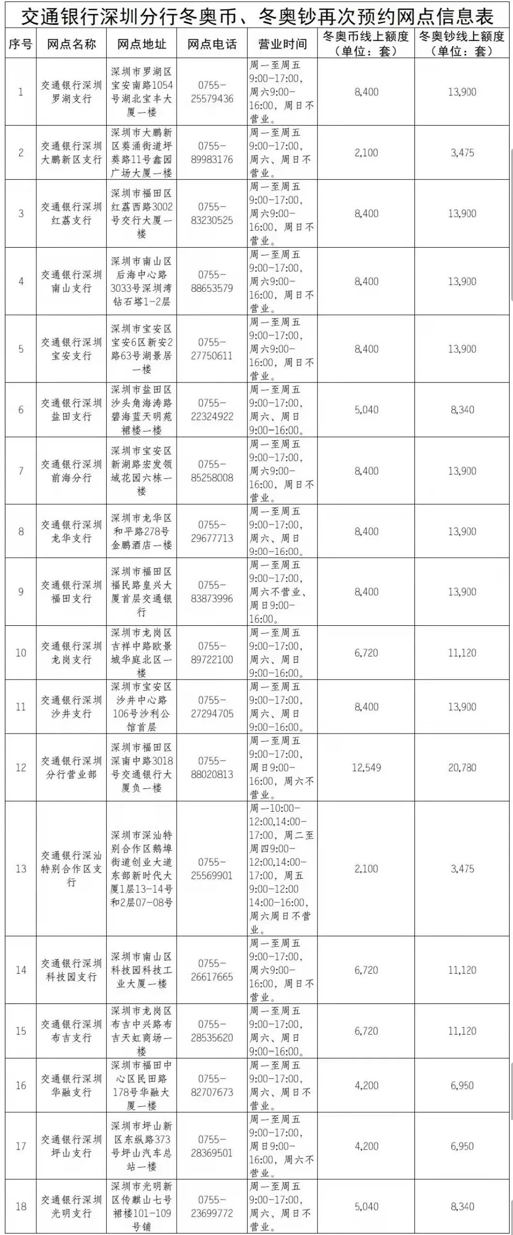 深圳新聞網(wǎng)2022年2月11日訊 (記者 朱琳)根據(jù)中國人民銀行《第24屆冬季奧林匹克運動會普通紀(jì)念幣、紀(jì)念鈔再次預(yù)約兌換工作安排》規(guī)定,將對第24屆冬季奧林匹克運動會普通紀(jì)念幣、紀(jì)念鈔(以下分別簡稱冬奧幣、冬奧鈔)發(fā)行剩余部分再次開展預(yù)約兌換。交通銀行深圳分行(以下簡稱“深圳交行”)承擔(dān)深圳地區(qū)的部分預(yù)約兌換工作,現(xiàn)將有關(guān)事項通告如下。