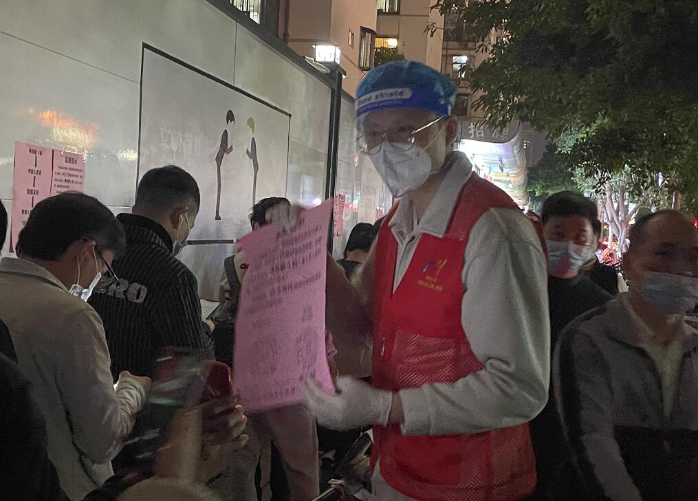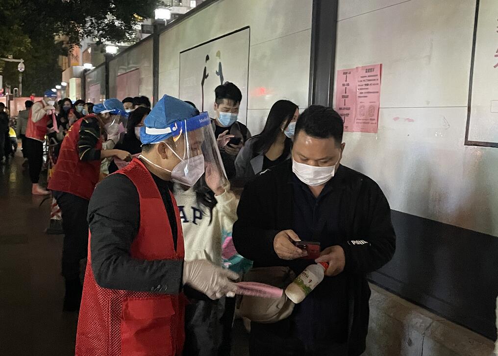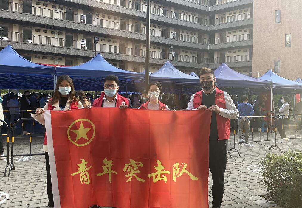 2月18日,青年志愿者們顧不上吃晚飯,一下班就奔赴南園社區(qū)核酸篩查檢測點,與南園社區(qū)的志愿者們一起投入到維護核酸采集秩序的隊伍中,一直服務到深夜。
