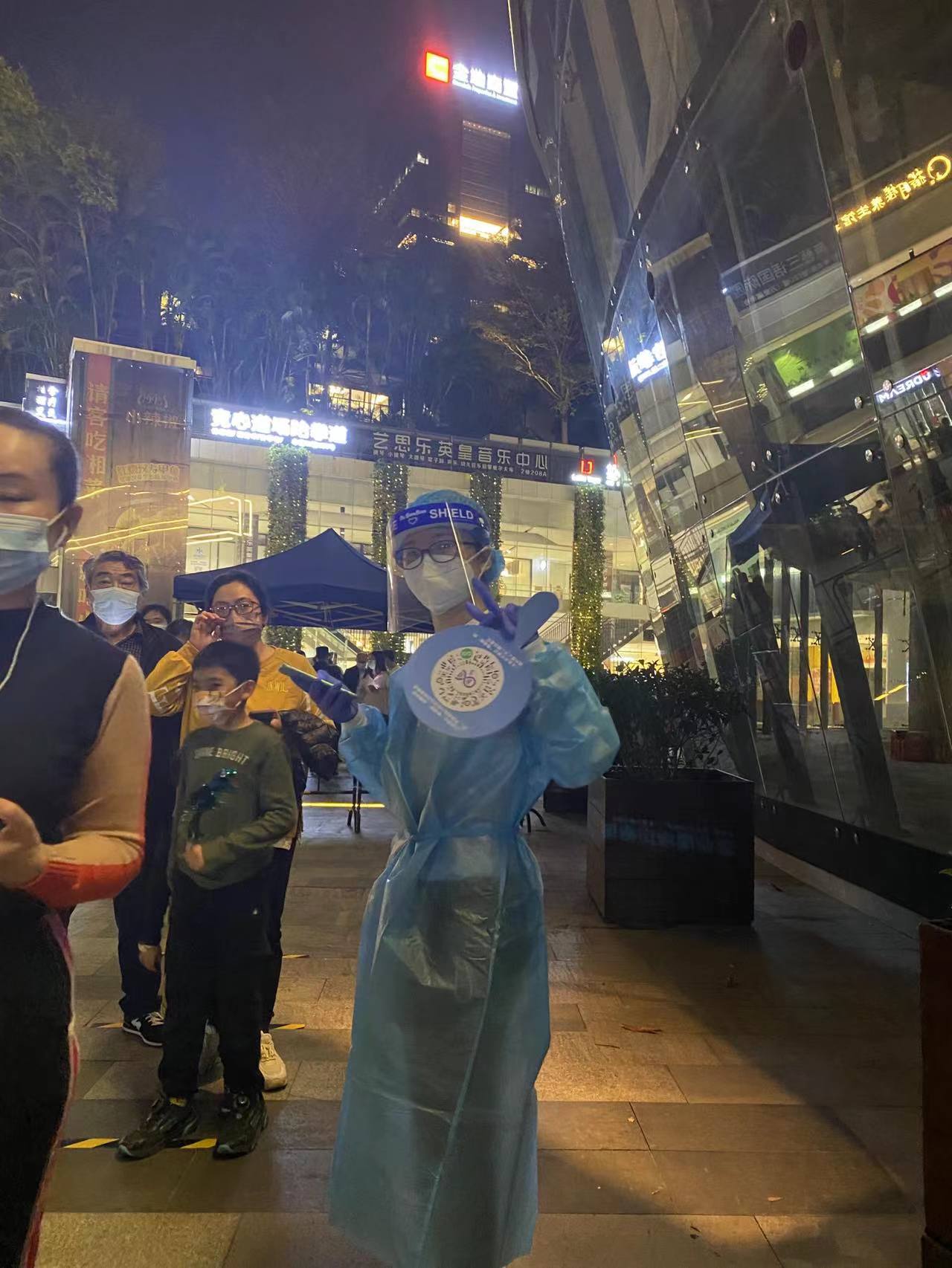 面對本輪疫情的來勢洶洶,新增病例的數(shù)字每天都在持續(xù)增加,許多小區(qū)開始封閉管理。在管控小區(qū)檢測點(diǎn)志愿者奇缺的狀況下,華夏銀行深圳蛇口支行的李宇航迅速報(bào)名成為社區(qū)義工。很快,他就穿著防護(hù)服,在封閉式管理的小區(qū)內(nèi)幫助核酸檢測秩序維護(hù)、指導(dǎo)粵核酸操作。他還主動(dòng)承擔(dān)檢測物資運(yùn)送的工作,小朋友們總是跑到圍欄外喊他“大白”。他背對著孩子們,自豪地說:“我是華夏小李!”