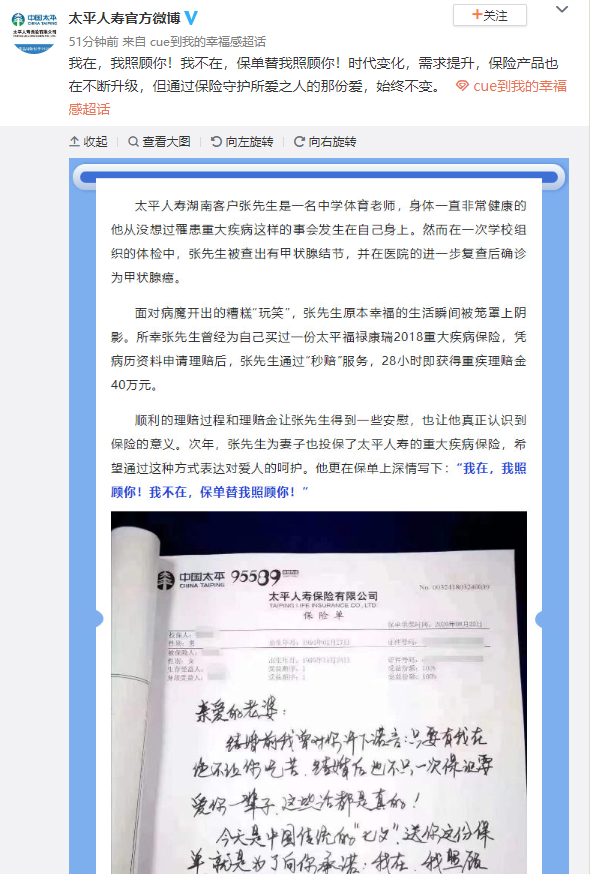在微博的網(wǎng)絡互動里,太平人壽積極發(fā)動內外勤及客戶,講述了幸福的生活趣事。