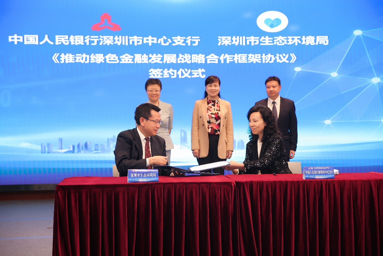 2021年9月,深圳人民銀行與深圳市生態(tài)環(huán)境局簽署《關(guān)于推動綠色金融發(fā)展的戰(zhàn)略合作框架協(xié)議》,以“推動深圳綠色金融發(fā)展,助力深圳碳達(dá)峰碳中和”為目標(biāo),建立定期共商、信息共享、政策共研合作機(jī)制,在舉辦綠色金融銀企對接會、共享區(qū)域環(huán)境信息、推動綠色企業(yè)(項目)庫建設(shè)等八個方面深化合作。