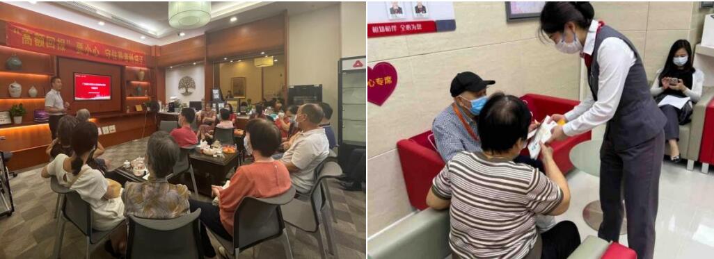 各網(wǎng)點(diǎn)邀請(qǐng)附近的老年客戶到行參與講座,以目前典型的養(yǎng)老騙局作為切入點(diǎn),通過播放分行自制養(yǎng)老防詐小短片,以生動(dòng)的語言向老年人揭示一些宣稱以房養(yǎng)老為名,誘騙老年人抵押房產(chǎn)購買“高收益”理財(cái)產(chǎn)品等進(jìn)行非法集資詐騙的陷阱,向老年人普及新型詐騙趨勢(shì),拓寬信息交流渠道,充分發(fā)揮銀行金融知識(shí)宣傳的網(wǎng)點(diǎn)效應(yīng)。