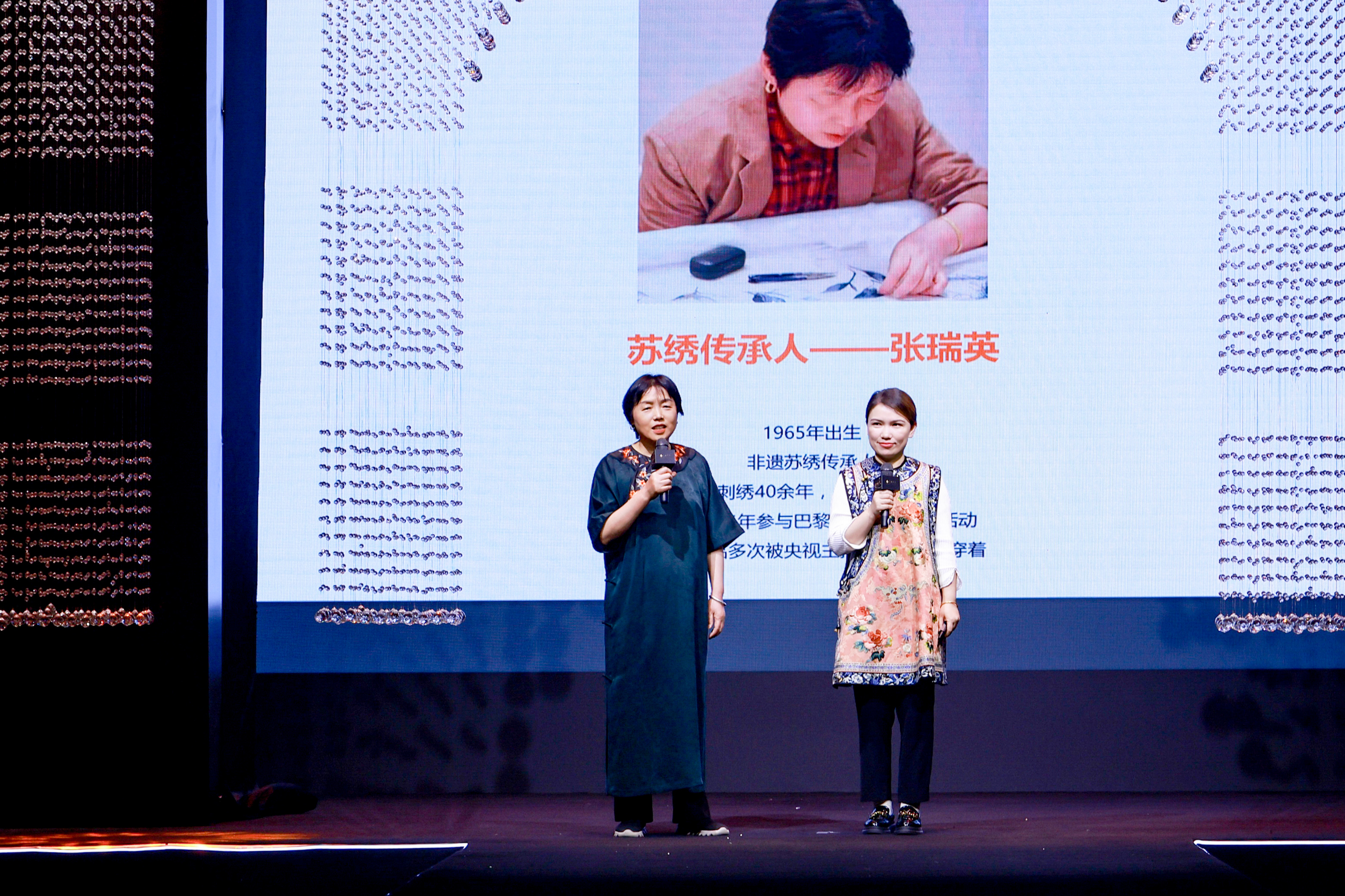 蘇繡傳人張瑞英現(xiàn)場進行了蘇繡文化講解,讓非遺傳承技藝再上舞臺,將非遺元素運用在當代的生活方式中,展現(xiàn)非遺文化非同尋常的光芒之處,傳播非遺重要傳承內(nèi)核,用服裝承載國風文化,傳遞中國風采。當以蘇繡手藝復(fù)刻的百年服飾再現(xiàn)于秀場,傳統(tǒng)技藝真實演繹“經(jīng)典永流傳”,彰顯了傳承中國文化的手工技藝“奢侈品”含義。