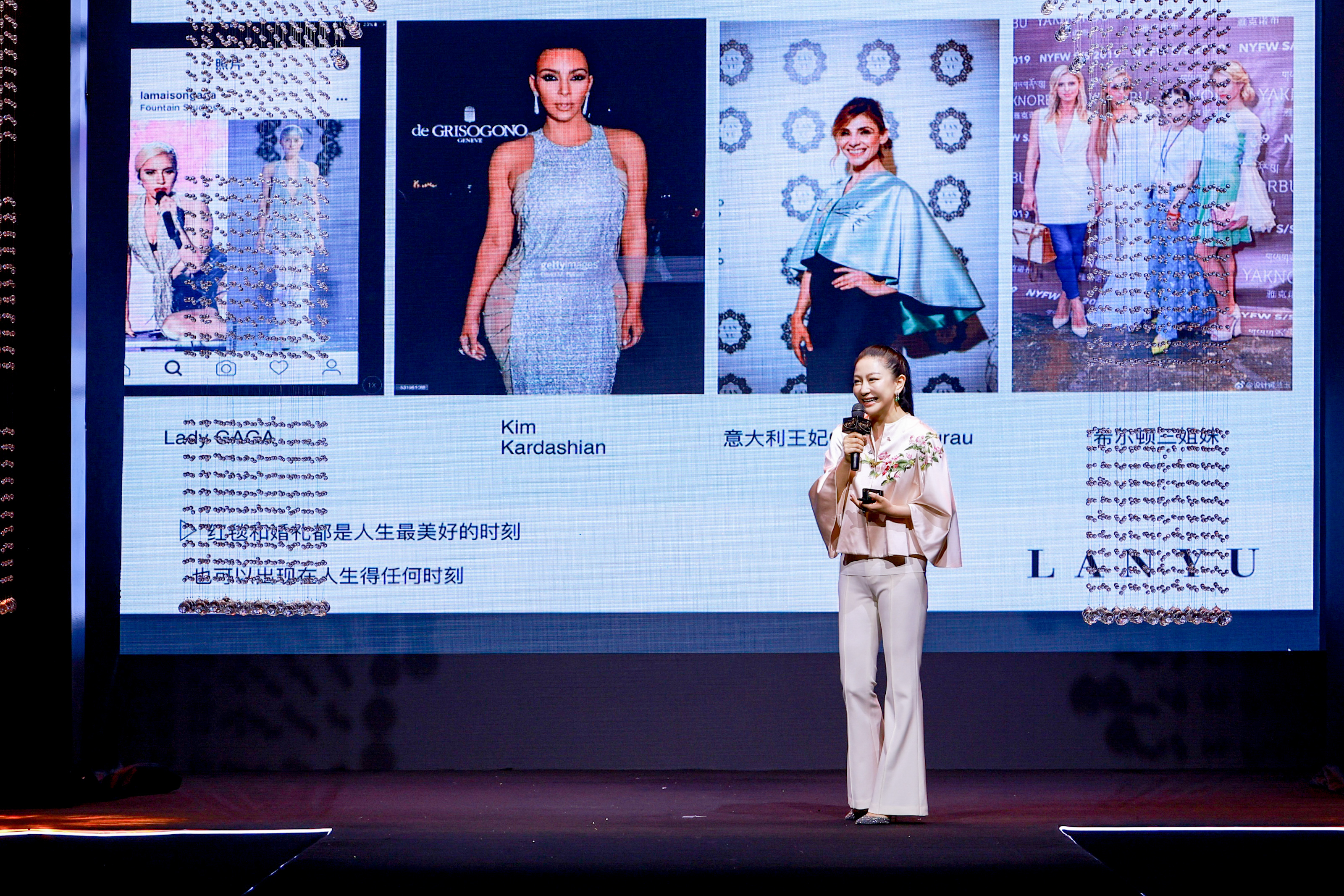 值得一提的是,LANYU品牌帶來了歷屆發(fā)布經(jīng)典系列中的代表作品,展出設(shè)計融合了蘇繡藝術(shù)的經(jīng)典手工技藝特色及現(xiàn)代時裝設(shè)計的新鮮潮流之美,綻放出了美輪美奐的視覺藝術(shù)效果,國風文化與國際時尚撞了個滿懷,讓現(xiàn)場觀眾贊嘆不已。
