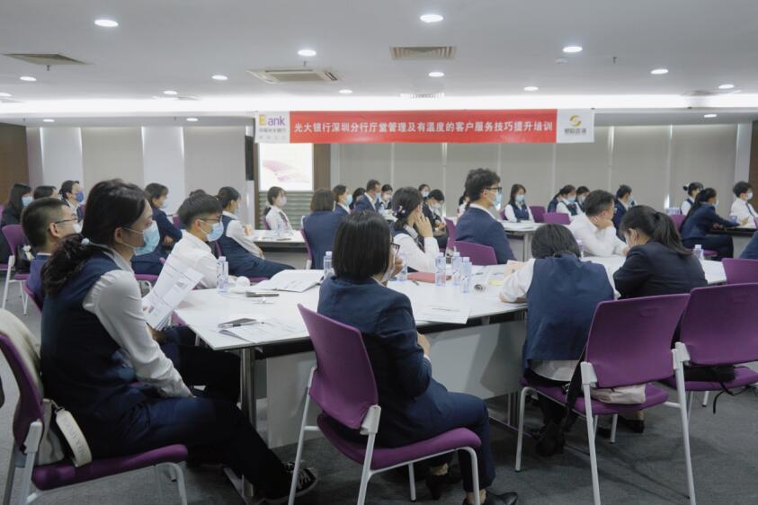 為落實新形勢下的服務(wù)工作要求,推進更優(yōu)客戶體驗的服務(wù)規(guī)范,履行社會責(zé)任,樹立光大品牌。11月12日,光大銀行深圳分行舉辦了“廳堂管理及有溫度的客戶服務(wù)技巧提升”第三期專題培訓(xùn)。深圳分行總監(jiān)、陽光服務(wù)(消費者權(quán)益保護)辦公室負責(zé)人以及各支行大堂經(jīng)理、大堂助理共50余人參加了培訓(xùn)。