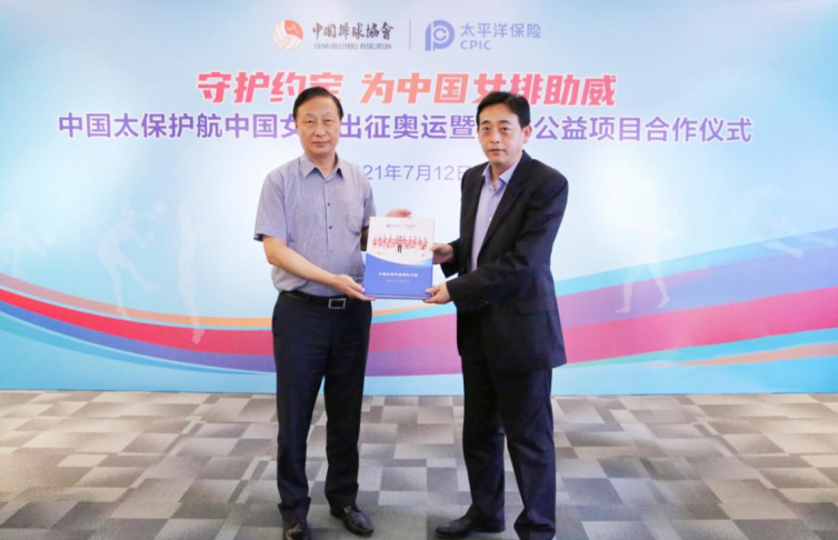 7月12日,中國太保在北京舉行護航中國女排出征奧運暨排球公益項目合作儀式。