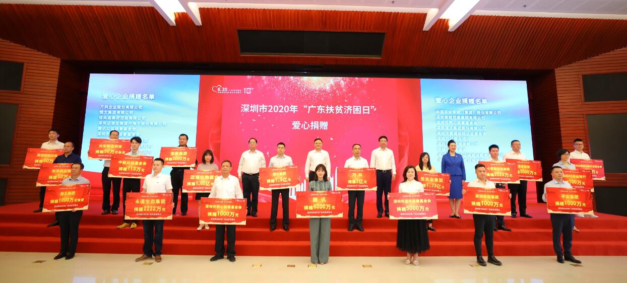 2020年“廣東扶貧濟(jì)困日”深圳農(nóng)村商業(yè)銀行與萬(wàn)科、恒大等多家愛(ài)心企業(yè)一同參與了現(xiàn)場(chǎng)舉牌認(rèn)捐,連續(xù)三年累計(jì)認(rèn)捐300萬(wàn)元,積極踐行慈心善行。