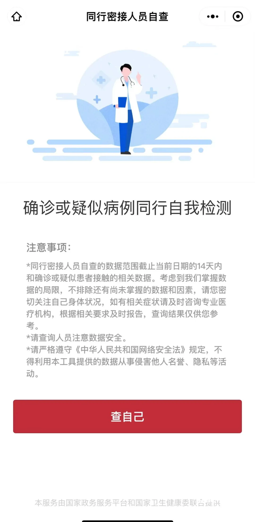 同行自查服務由國家政務服務平臺和衛(wèi)健委聯(lián)合提供,14天內(nèi)乘坐過飛機或者火車等公共交通工具出行的市民可掃描下方二維碼進行查詢。