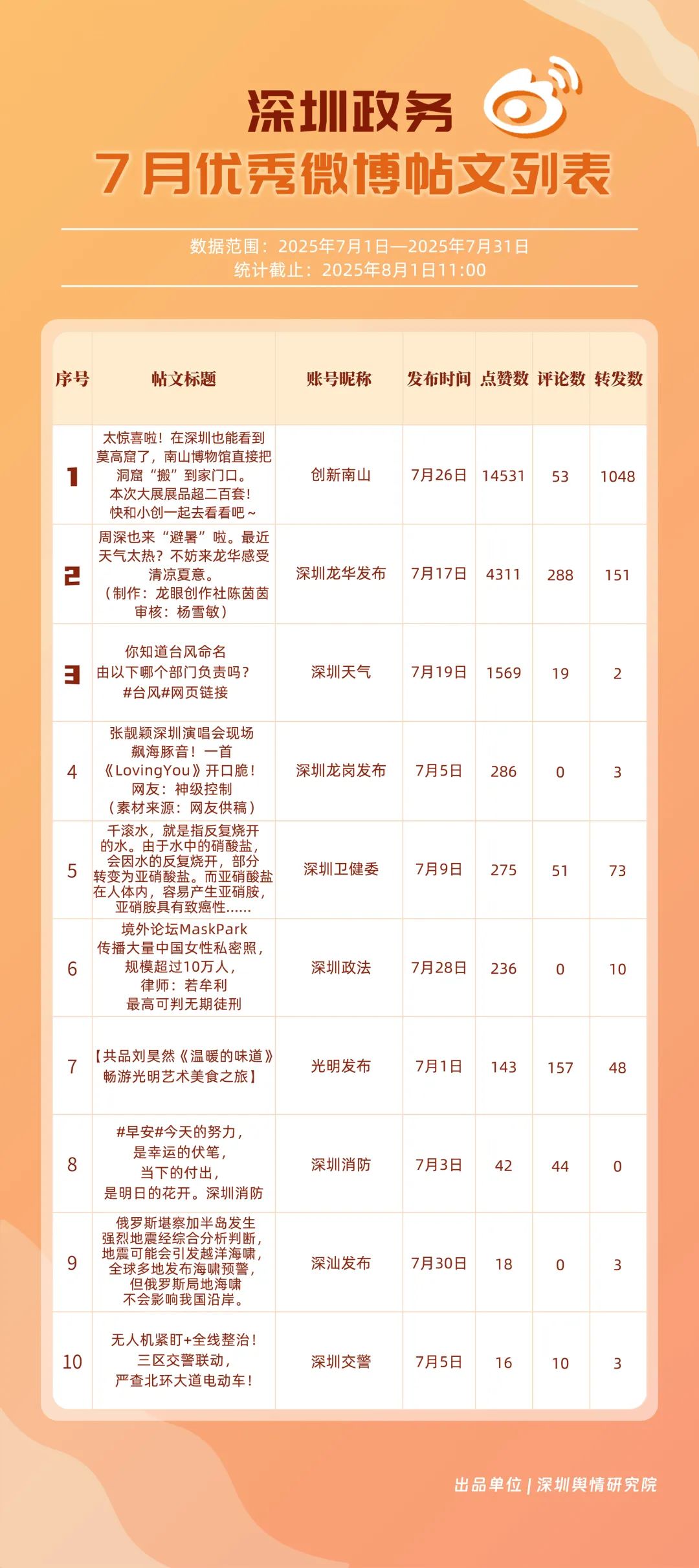 四、7月深圳優(yōu)秀政務(wù)新媒體賬號