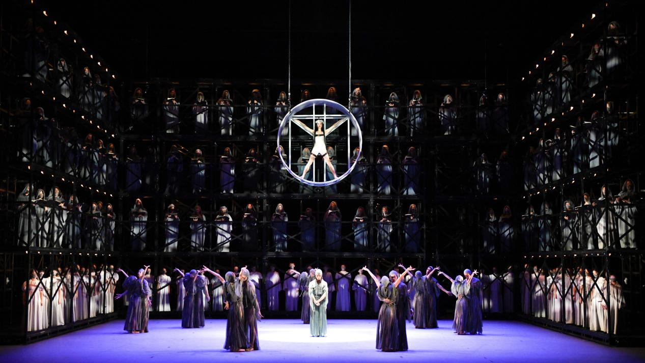 《布蘭詩歌》演出包含《布蘭詩歌》與《最后的歌》,由香港芭蕾舞團(tuán)和香港管弦樂團(tuán)聯(lián)袂呈獻(xiàn)。作品皆取材經(jīng)典藝術(shù)IP,環(huán)繞舞臺的九米高臺營造出修道院內(nèi)景,過百位歌唱家現(xiàn)場演唱,場面震撼。