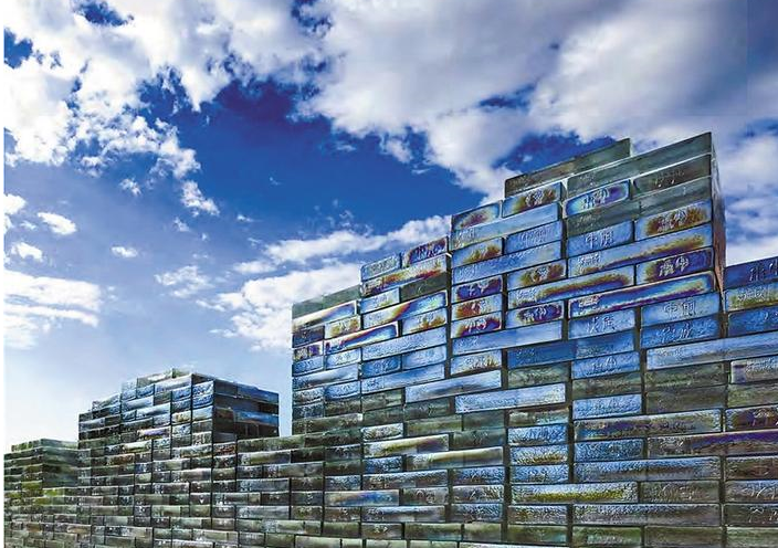 最具代表性的是盛姍姍受邀參加2009年第53屆威尼斯雙年展的作品《開放的長城》,它長約22米,由2200多塊玻璃磚組成,對應(yīng)中國長城存世的2200多年歷史,通身透出七彩光芒;《文字演變》描述了象形文字從原始的狀態(tài)到當(dāng)代文字的演變;《舞動(dòng)的絲帶》則以中國當(dāng)代的絲帶舞為基礎(chǔ),形成色彩與絲帶交織的造型,而這種造型代表了泛文化在公共建筑內(nèi)的交融。此外,《生生不息的竹子》《華夏青銅時(shí)代系列》《算盤》等作品,都可以找到鮮明的中國傳統(tǒng)文化元素。
