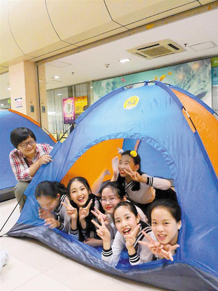 120個(gè)小讀者家庭近日受邀來(lái)到深圳少年兒童圖書館,開啟一年一度的“圖書館奇妙夜”。往常晚上8點(diǎn)的深圳少年兒童圖書館是讀者離場(chǎng)之時(shí),當(dāng)晚卻燈火通明,熱鬧伊始。首先迎接小讀者們的是“歡迎晚會(huì)”,緊接著,小讀者們進(jìn)入到圖書館分組閱讀之旅中,他們穿行在帳篷營(yíng)地之間,享受著奇妙閱讀夜的快樂(lè)。