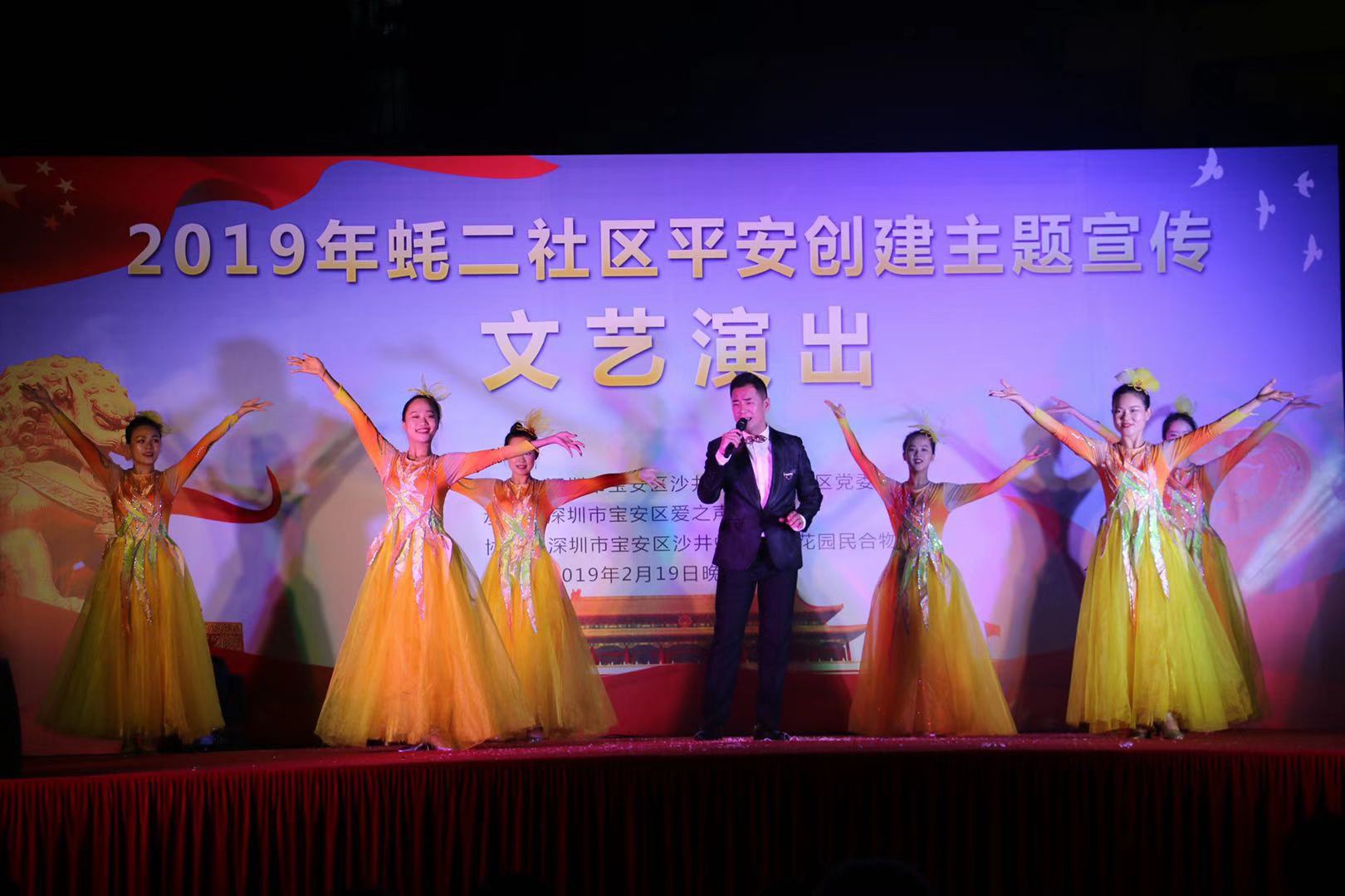 深圳新聞網2019年2月20日訊 (記者/周錦春 通訊員/孫善文)2月19日是元宵節(jié),當晚,由寶安區(qū)沙井街道蠔二社區(qū)黨委主辦,寶安區(qū)愛之聲藝術團承辦的“平安創(chuàng)建宣傳”文藝演出活動在學府花園舉行。本次活動包括了戲曲、歌曲、舞蹈、小品、魔術等多種形式,豐富多樣,生動有趣,為近500名社區(qū)居民提供了一場精神盛宴。