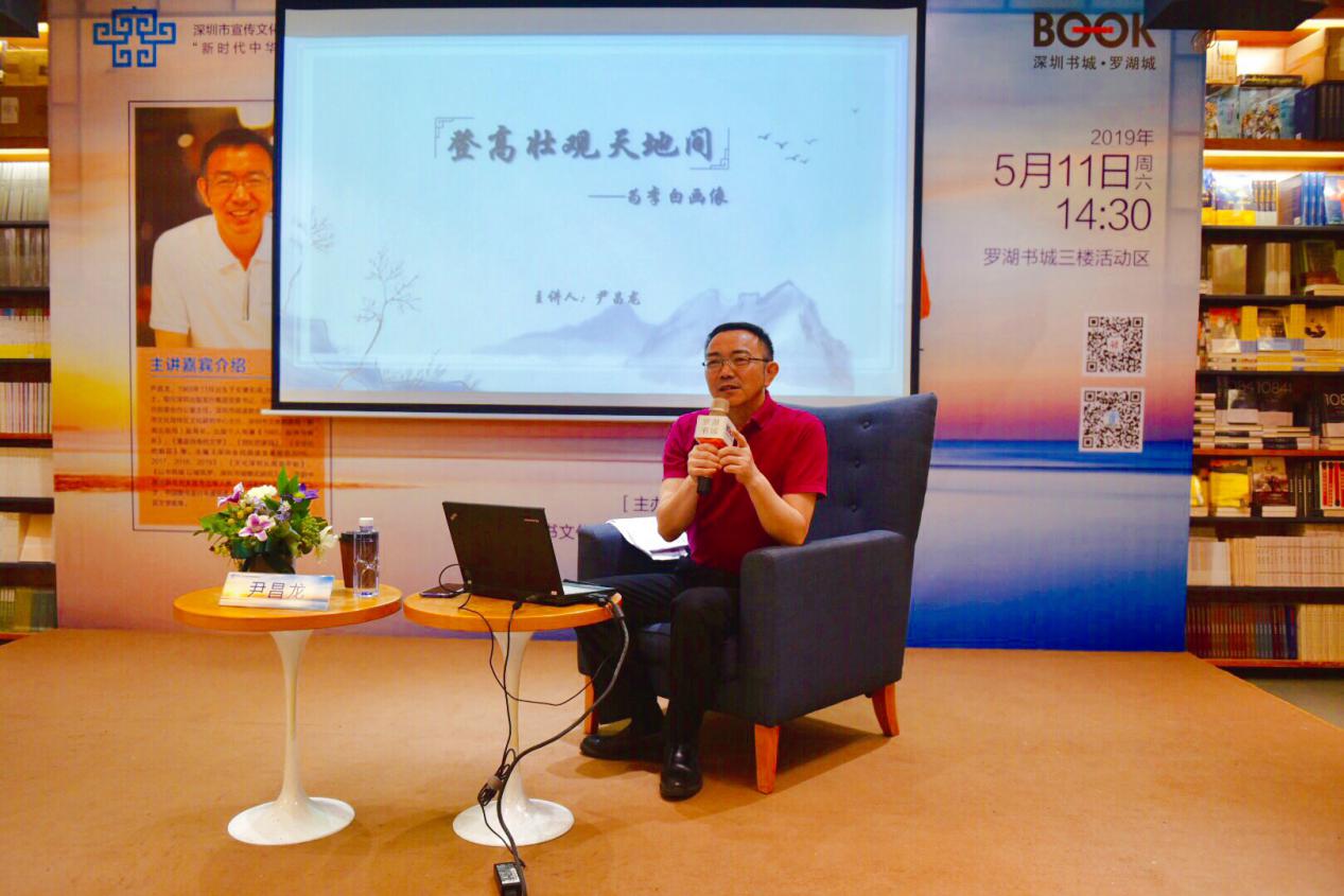 5月11日下午,“新時(shí)代中華優(yōu)秀傳統(tǒng)文化進(jìn)社區(qū)”項(xiàng)目首場(chǎng)講座之“登高壯觀天地間——為李白畫(huà)像”在羅湖書(shū)城三樓開(kāi)展。本次活動(dòng)由深圳市壹書(shū)文化傳播有限責(zé)任公司、深圳書(shū)城羅湖城主辦,特邀深圳出版發(fā)行集團(tuán)黨委書(shū)記、總經(jīng)理尹昌龍博士擔(dān)任主講嘉賓,解讀多面詩(shī)仙李白,為聽(tīng)眾奉上一場(chǎng)難得的文學(xué)盛宴。講座還未開(kāi)始,現(xiàn)場(chǎng)已座無(wú)虛席,過(guò)道上站滿了李白迷,聽(tīng)眾們?cè)缭缇蛠?lái)靜候著了。