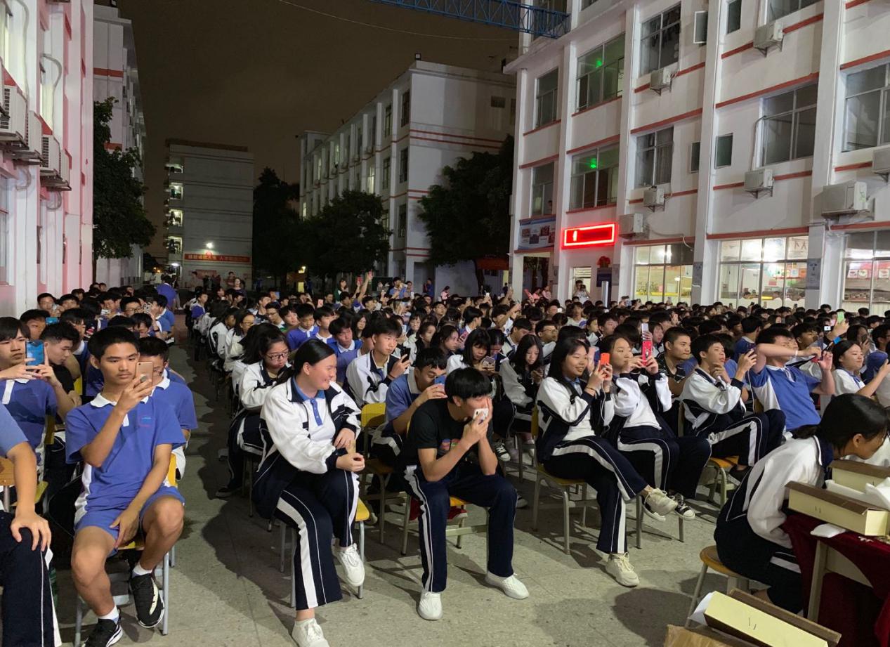 天還亮著,寶山大舞臺前已座無虛席,學(xué)生們精神抖擻,笑容可親,靜候一場文化饗宴。