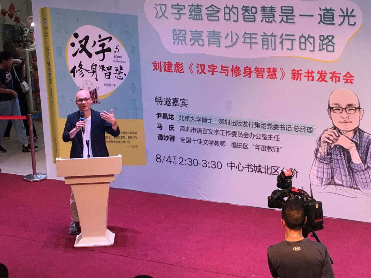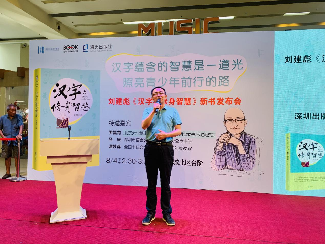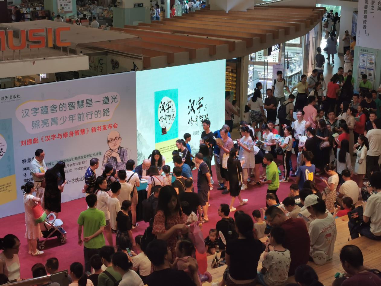 深圳新聞網(wǎng)訊 8月4日下午,壹讀書會(huì)創(chuàng)始人、知名閱讀推廣人劉建彪《漢字與修身智慧》新書發(fā)布會(huì)在深圳書城中心城隆重召開,本次活動(dòng)由海天出版社和深圳書城中心城共同舉辦,北京大學(xué)文學(xué)博士、深圳出版發(fā)行集團(tuán)黨委 書記、總經(jīng)理尹昌龍,深圳市語(yǔ)言文字工作委員會(huì)辦公室主任馬慶,全國(guó)十佳文學(xué)教師、福田區(qū)“年度教師”譚妙蓉三位嘉賓蒞臨現(xiàn)場(chǎng)并致辭。本次新書發(fā)布受到市民的熱烈追捧,活動(dòng)開始前中心書城北區(qū)臺(tái)階、過(guò)道以及走廊或坐著或站著翹首以盼的閱讀愛(ài)好者。