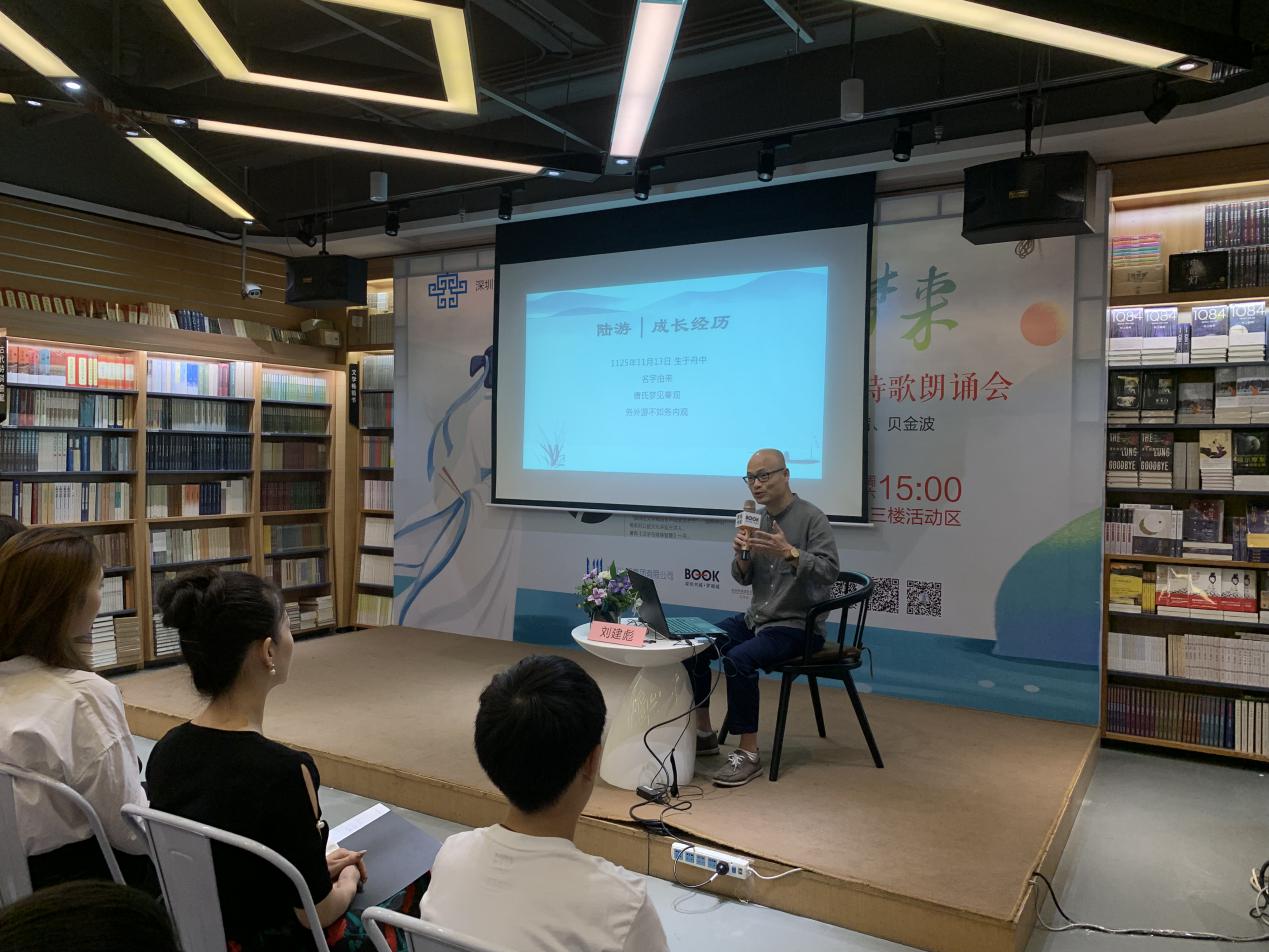 深圳新聞網(wǎng)訊 9月21日下午,由深圳市宣傳文化事業(yè)發(fā)展專項基金資助的“新時代中華優(yōu)秀傳統(tǒng)文化進(jìn)社區(qū)”項目之“鐵馬冰河入夢來”陸游愛國詩詞公益講座暨陸游愛國詩詞朗誦會在羅湖書城三樓活動區(qū)成功舉辦。本次活動由深圳市壹書文化傳播有限責(zé)任公司、深圳書城羅湖城共同主辦,壹書閱讀推廣人、愛詩家創(chuàng)始人劉建彪先生擔(dān)任主講嘉賓?;顒由形撮_始,現(xiàn)場已座無虛席,觀眾們對講座充滿了期待,更有小朋友們朗誦起了陸游的名句。