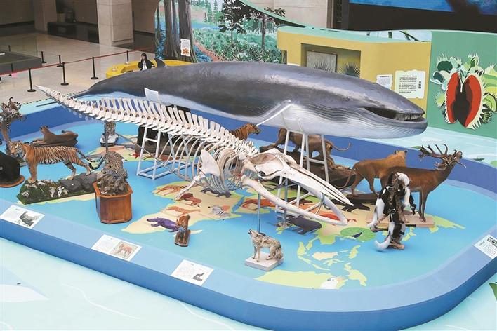 展覽內(nèi)容豐富多彩,主題鮮明,不僅涵蓋天文、地質(zhì)、生物和人文等傳統(tǒng)學(xué)科知識(shí),還涉及生命、制藥、通訊等現(xiàn)代前沿科技。在夢(mèng)幻炫酷的星空屋,觀眾可以看到世界上最大規(guī)模的巡天項(xiàng)目“斯隆數(shù)字巡天項(xiàng)目”盤子,感受浩瀚星海。置身“草木物語”展場,猶如打開大自然的百寶箱,觀眾可以親手觸摸2億年前的南洋杉型硅化木,觀察生動(dòng)形象的捕蠅草,看看穿越5000萬年時(shí)空的大型棕櫚葉化石和現(xiàn)在的棕櫚葉標(biāo)本有什么不同。在“百獸物語”,觀眾可以近距離目睹地球第二大現(xiàn)生動(dòng)物長須鯨,草原霸主和百獸之王異種雜交的后代獅虎獸,國際貿(mào)易三大禁品盔犀鳥頭骨、犀牛角和象牙。在“瑰石物語”,觀眾可以看到絢麗的礦物單晶體,了解礦石礦物中的各種有用元素,學(xué)習(xí)礦石怎樣用于精細(xì)的機(jī)械儀器制作中。