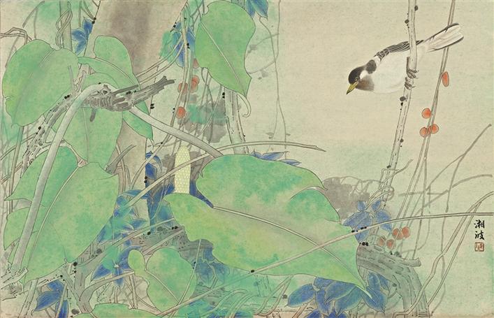 觀陳湘波之畫,初見色彩章華,畫面滿紙,復(fù)見清淡閑野,如水溫柔。陳湘波用力最大、用情最深的工筆畫,有著流暢而精細(xì)的線條、準(zhǔn)確而淡雅的用色,構(gòu)成清新而沉穩(wěn)的畫面效果。細(xì)細(xì)品賞“春、夏、秋、冬”的畫作時,觀眾可以體會得到花鳥蟲魚在風(fēng)雨日月中的生命節(jié)律與作者的情感節(jié)律相通對應(yīng),從而將自然生命的豐富性和獨特性呈現(xiàn)出來。自然景物、花草蟲魚,都有自己獨特的生命,其縱向的發(fā)芽長葉開花凋謝的生命軌跡,和橫向的對風(fēng)霜雨雪、日月山河的承負(fù)和感受,是變化無窮意味無盡的。