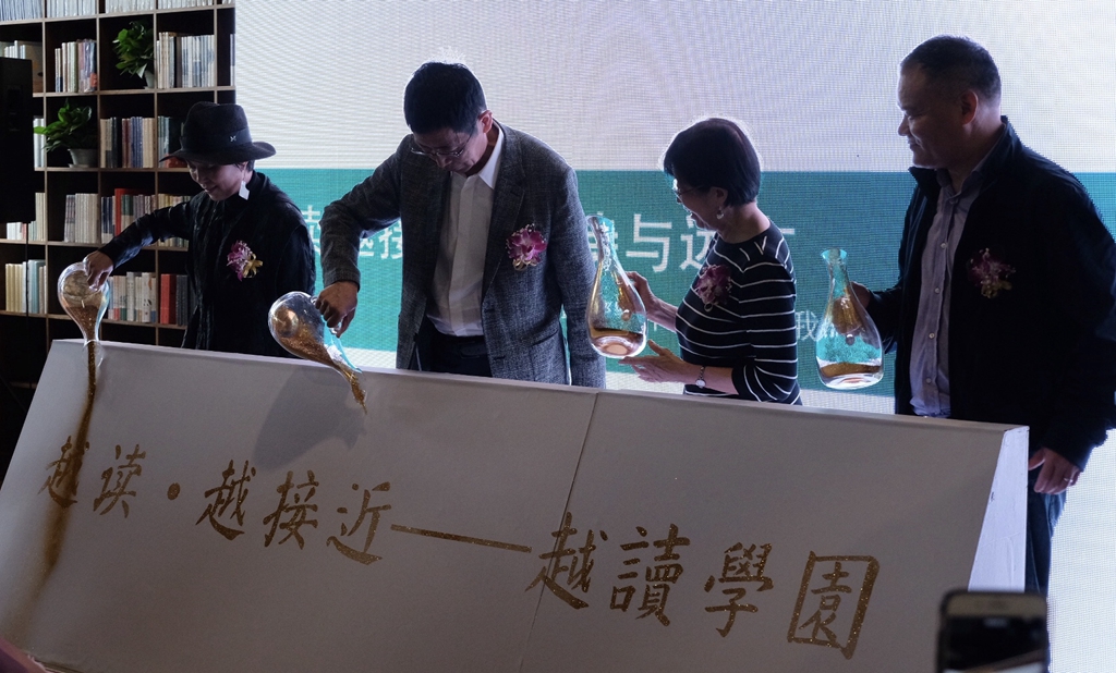 此次開園儀式吸引了眾多文化界名人相聚于此,他們參觀了越讀學園,并詳細了解越讀學園的由來及運營模式。儀式現(xiàn)場還舉行了“越讀越接近——詩與遠方”主題沙龍活動,以一句“杯子碰到一起,都是夢破碎的聲音”而名動天下的北島,攜著他的詩篇來到沙龍現(xiàn)場,與各位嘉賓坐在一起,暢聊那些年讓人心馳神往的詩篇。