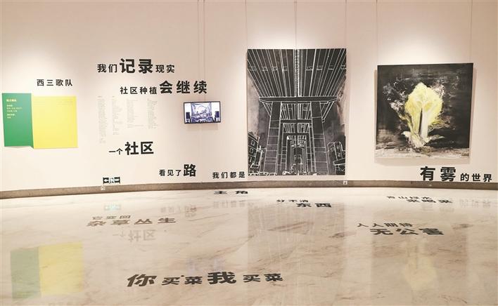 策展人盛葳向記者介紹說:“社區(qū)藝術(shù)創(chuàng)作在不同地域呈現(xiàn)出不同的特色,藝術(shù)家關(guān)注的內(nèi)容和主題各不相同,展覽以地域?yàn)榫€索,分為華北/華中、華南/華東、西南、西北四個(gè)板塊進(jìn)行綜合呈現(xiàn)?!?/p>
