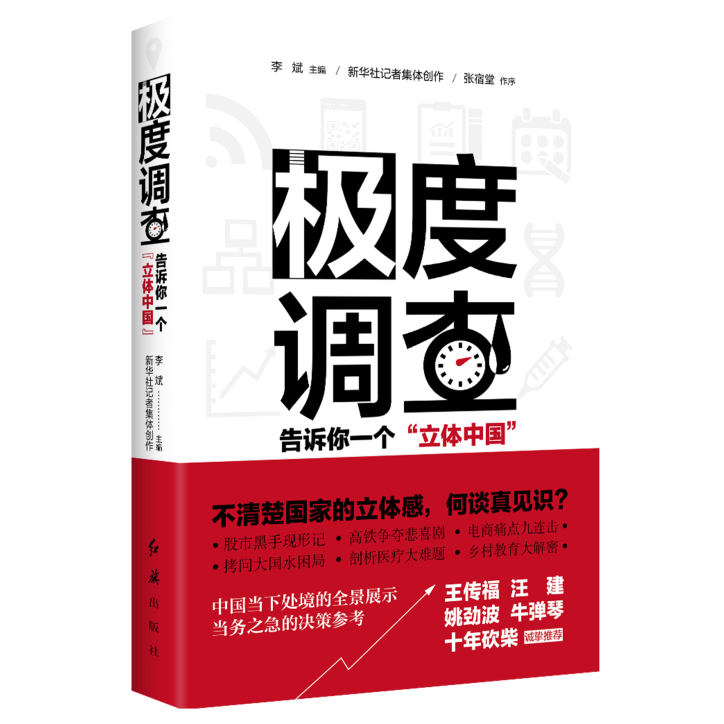 “他山之石,可以攻玉?!秉h員干部除了直接調(diào)研,還要善于間接調(diào)查,研讀科研機(jī)構(gòu)和媒體的調(diào)研報(bào)告,通過專業(yè)人士的視角,了解國(guó)情。 《極度調(diào)查:告訴你一個(gè)“立體中國(guó)”》,就是一本記錄時(shí)代變遷的調(diào)研力作。新華社北京分社副社長(zhǎng)、總編輯李斌者歷時(shí)三年,深入中國(guó)各地實(shí)施一系列重大調(diào)研,直擊民生痛點(diǎn)與焦點(diǎn),全方位呈現(xiàn)了復(fù)雜多樣的中國(guó)社會(huì)現(xiàn)實(shí)。20余萬(wàn)字的《極度調(diào)查》,來(lái)自繁華都市,來(lái)自風(fēng)云行業(yè),更來(lái)自深山峽谷、偏遠(yuǎn)山村,股市、高鐵、電商、生態(tài)、教育、貧困、健康等諸多方面均有涉及,傳達(dá)出了最一線、富有思想沖擊力的聲音。讀此書,全方位、多維度了解中國(guó)國(guó)情。