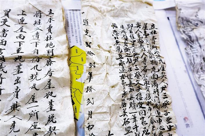 “這是博物館第二次發(fā)現(xiàn)大批紙質(zhì)文物,而上一次發(fā)現(xiàn)已是1999年,一定要盡快邀請(qǐng)專業(yè)公司來(lái)對(duì)這些紙質(zhì)文物進(jìn)行修復(fù)?!痹诖簌i古城博物館會(huì)議室,館長(zhǎng)胡勇與副館長(zhǎng)黃文德面前鋪展開一桌故紙,最老的已有178年,是一張清道光二十二年(1842年)屋契。