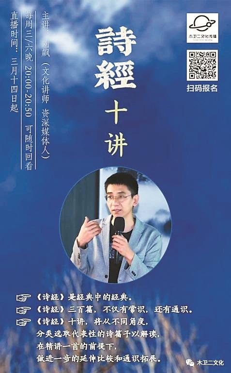 除了圖書(shū)館、書(shū)店,還有一批民間書(shū)友會(huì)在以自己的方式堅(jiān)持開(kāi)展閱讀活動(dòng)。比如微信公號(hào)“木二衛(wèi)文化”開(kāi)播了《詩(shī)經(jīng)》直播課程。從不同角度,分類(lèi)選取代表性的詩(shī)篇進(jìn)行解讀。