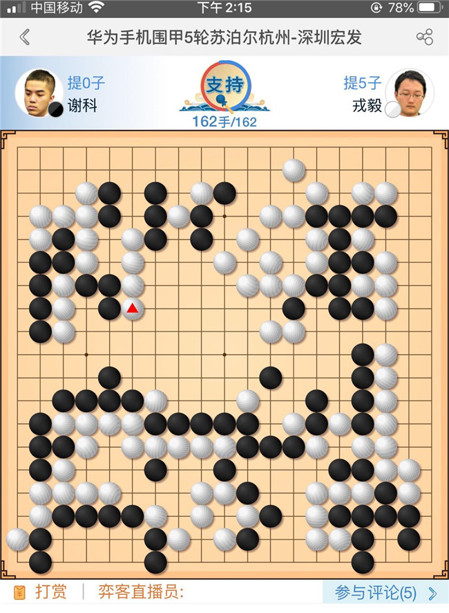 見(jiàn)圳客戶(hù)端?深圳新聞網(wǎng)2020年8月29日訊(記者周錦春)休戰(zhàn)一天的2020“華為手機(jī)杯”中國(guó)圍棋甲級(jí)聯(lián)賽,今天重燃戰(zhàn)火,第五輪繼續(xù)在浙江長(zhǎng)興進(jìn)行。深圳宏發(fā)隊(duì)對(duì)陣衛(wèi)冕冠軍蘇泊爾杭州隊(duì),結(jié)果以3比1大勝。目前積12分,暫居積分積分榜第二位。本輪亮點(diǎn):深圳宏發(fā)隊(duì)三連勝!快棋五連勝!戎毅五連勝!