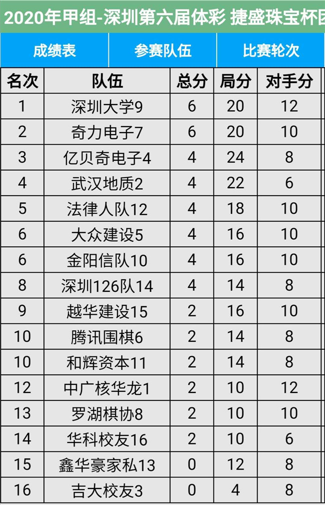 深圳市圍棋聯(lián)賽以其獨特的25D賽制,新穎的團體對抗形式,旗鼓相當?shù)膶嵙Ρ绕矗钍車鍚酆谜叩南矏?,已然成為每年一度的市圍棋愛好者的盛會。本屆?lián)賽共有28支隊伍參賽,每支隊伍12人,領隊和教練各一至兩人,今年參賽人數(shù)約四百多人。其中,超級隊12支,進行11輪單循環(huán)比賽,甲級隊16支進行11輪積分循環(huán)賽。具體賽程安排是:今日開賽后,連續(xù)四個周日,每周3場比賽,計劃在11月22日完成比賽。本屆比賽12支超級隊是:盛榮模具、東方薈隊、吉大隊、小明日酒、萬景華隊、俊城建設、鹽田棋協(xié)、瑞珂瑪隊、兒童棋院、愛博科技、大華稅務、報業(yè)青春。16支甲級隊是:中廣核華龍、武漢地質、吉大校友、億貝奇電子、大眾建設、騰訊圍棋、奇力電子、羅湖圍棋、深圳大學、金陽信隊、和輝資本、法律人隊、鑫華豪家私、深圳126隊、越華建設、華科校友。大家濟濟一堂,通過手談增進友誼,提高棋藝。本屆比賽超級組與甲級組實行升降制,將通過四個周日的比賽,分別決出前六名和三支升降的隊伍。