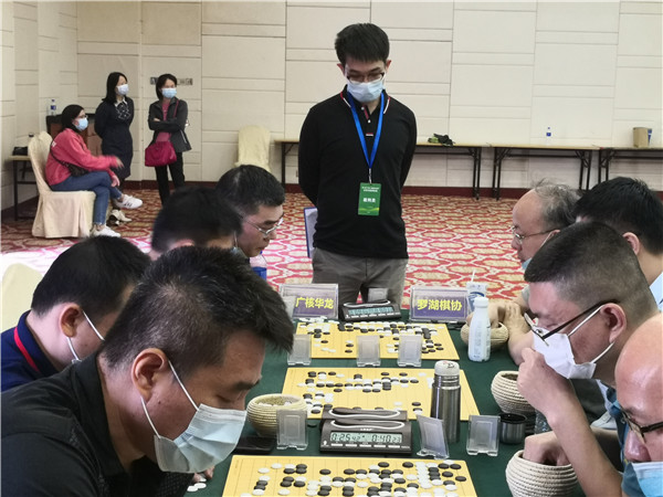 本屆聯(lián)賽在仍在抗疫的形勢下來之不易,賽事組委會非常珍惜,在防疫方面下了一番功夫。本次賽事執(zhí)行主任、著名國手梁偉棠九段介紹說:組委會在本次賽事《補(bǔ)充規(guī)定》中要求“本屆賽事因?yàn)橐咔榉揽匦枰?,全體人員必須佩戴口罩,掃碼入場,并全程不得摘下口罩;體溫過高者謝絕入場”。記者觀察到,現(xiàn)場的防疫落實(shí)還是比較到位的,一是在賽場入口布置了三人團(tuán)隊(duì),加強(qiáng)了掃碼、體溫檢測、提醒大家戴口罩,凡是入場的隊(duì)員、工作人員以及觀戰(zhàn)的圍棋愛好者,都必須進(jìn)行體溫檢測,符合正常體溫的方可入場參賽;二是要求參賽隊(duì)員和工作人員戴口罩;三是加強(qiáng)賽場巡查,對沒有自覺戴口罩的在場人員進(jìn)行勸導(dǎo)??傮w來說,賽場防疫秩序良好。
