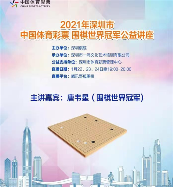 見圳客戶端?深圳新聞網(wǎng)訊(記者周錦春)2021年1月22、23、24日連續(xù)三天晚上,由深圳棋院主辦,深圳市一鳴文化藝術(shù)培訓有限公司承辦,深圳市體育彩票管理中心支持的“2021年深圳市中國體育彩票圍棋世界冠軍公益講座”在騰訊野狐圍棋平臺線上舉行。