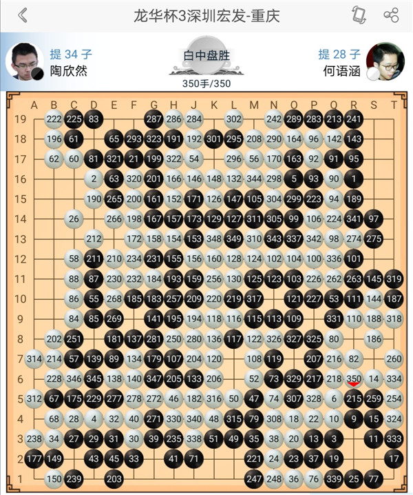 一臺(tái)戎毅執(zhí)黑對(duì)陣?yán)钴幒?,右上?zhàn)斗后黑棋稍有優(yōu)勢(shì),之后黑棋沖擊中央白棋過分,應(yīng)該慢慢收官,白棋正確應(yīng)對(duì),戰(zhàn)斗中便宜后獲得勝利。二臺(tái)主將時(shí)越執(zhí)白對(duì)陣等級(jí)分排名第二的楊鼎新,中盤黑棋打入右邊后形成亂戰(zhàn),白棋失誤比黑棋更多,戰(zhàn)斗結(jié)束進(jìn)入官子時(shí)黑勝勢(shì)。