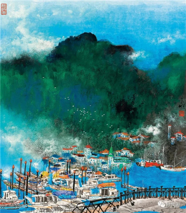 宋玉明從金陵畫派的新傳統(tǒng)跨越到城市表現(xiàn)的積彩拓墨畫法,既體現(xiàn)了現(xiàn)代化城市對于變革傳統(tǒng)的時代訴求,也體現(xiàn)了他移居深圳后這座新興城市文化對于他的深刻影響。畢竟,連續(xù)數(shù)屆的深圳水墨雙年展對于水墨在跨文化中重要作用與表現(xiàn)方法的突破,都給予他至深的思想開拓。這表明,城市山水畫已不單純是用中國畫表現(xiàn)城市的命題,而是其中能夠蘊含多少城市文化觀念與城市審美的方法,宋玉明對于城市山水畫的探索,體現(xiàn)的正是這樣一種對城市現(xiàn)代文化的思想融合性。而不拘謹于城市一磚一石、一街一道、一房一樓的描繪,著眼于發(fā)揮水墨與彩墨表現(xiàn)的自由性,抑或體現(xiàn)了人性、自然與現(xiàn)代城市共同作用的現(xiàn)代生活方式與人文理想。的確,純粹用中國畫或水墨畫來探索城市的現(xiàn)代化景觀表現(xiàn),也許只是淺層次的審美需求;而只有當把山水畫作為人與自然和諧統(tǒng)一的觀念表達植入城市現(xiàn)代化的審美訴求時,城市山水畫才能真正凸顯出其深刻的美學價值。這正是我們從宋玉明的作品里能夠讀解到的他對于城市山水畫審美理想的一種勾畫。