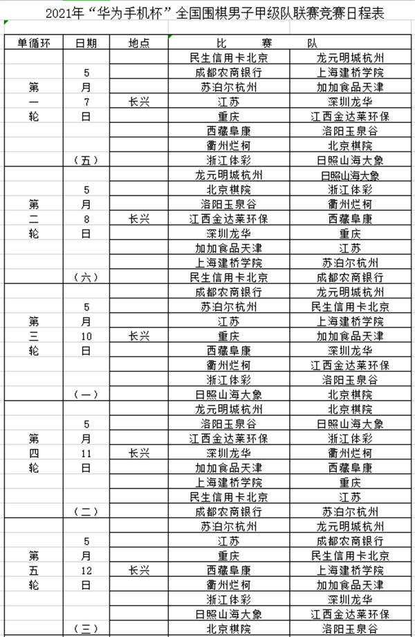 見圳客戶端深圳新聞網(wǎng)2021年5月6日訊(記者 周錦春)2021華為手機(jī)杯中國圍棋甲級聯(lián)賽今天在浙江長興拉開帷幕,首輪比賽將在5月7日進(jìn)行。根據(jù)4月22日在中國棋院舉行的抽簽結(jié)果,次日首輪比賽對陣形勢如下:深圳龍華隊(duì)將對陣江蘇隊(duì);衛(wèi)冕冠軍江西隊(duì)對陣重慶隊(duì);上屆亞軍日照隊(duì)對陣浙江隊(duì)。