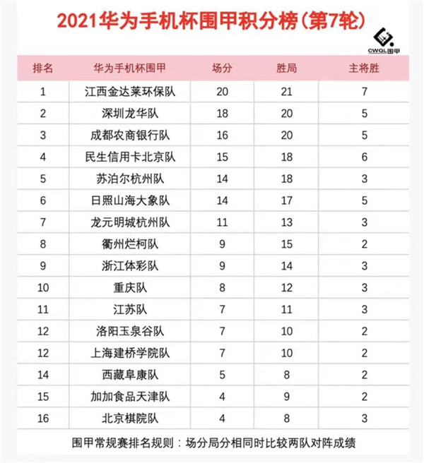 見圳客戶端?深圳新聞網(wǎng)2021年6月8日訊(記者周錦春)華為手機(jī)杯男子圍甲聯(lián)賽16支隊(duì)伍今日繼續(xù)在浙江長(zhǎng)興捉對(duì)進(jìn)行第七輪的廝殺。繼第二階段首輪失利后,今日的深圳龍華隊(duì)似乎找回了第一階段五連勝的感覺,以3:1戰(zhàn)勝北京棋院隊(duì),從昨天的積分榜第三位前進(jìn)了一步,重拾升勢(shì)位居第二。江西隊(duì)依然神勇,以3:1擊敗洛陽隊(duì),繼續(xù)領(lǐng)跑積分榜。