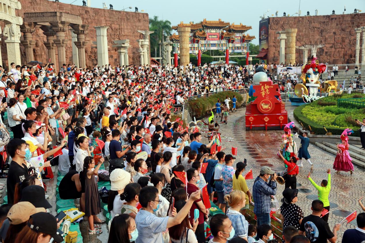 讀特客戶端·深圳新聞網(wǎng)2021年10月1日訊(記者 田志強(qiáng) 通訊員 陳嘉琳 黃海峰)今天,深圳世界之窗迎來第一波旅游小高峰。上午10:00整,世界之窗前廣場舉行了莊嚴(yán)的升國旗儀式,現(xiàn)場游客齊唱國歌,高亢嘹亮的歌聲響徹深南大道,激動(dòng)人心。閘口處,俄羅斯歡樂家庭劇、異域風(fēng)情迎賓禮以國際歡樂氛圍喜迎八方來客。