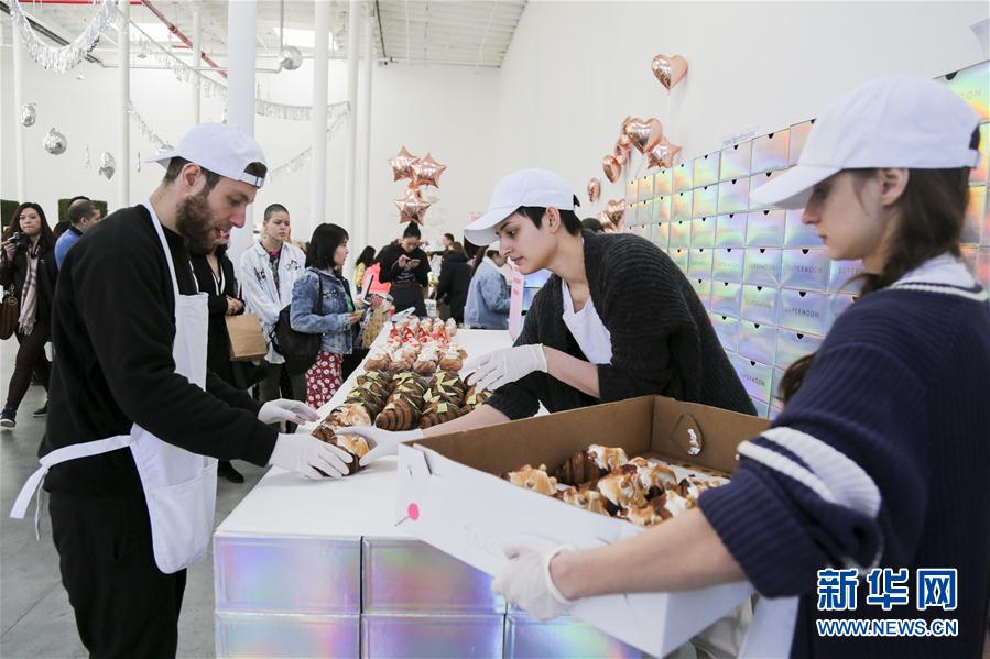 3月18日,在美國紐約,工作人員在甜品節(jié)上準(zhǔn)備出售熱門甜品。一年一度的紐約“甜品目標(biāo)”甜品節(jié)于17日開幕,20多家甜品展商在現(xiàn)場展示造型精美、創(chuàng)意十足的美味甜品,吸引超過5000名甜品愛好者報(bào)名參加。甜品節(jié)還精心設(shè)置了美拍專區(qū),方便人們?cè)谙碛锰鹌返耐瑫r(shí)在社交平臺(tái)上分享甜蜜時(shí)刻。新華社記者王迎攝