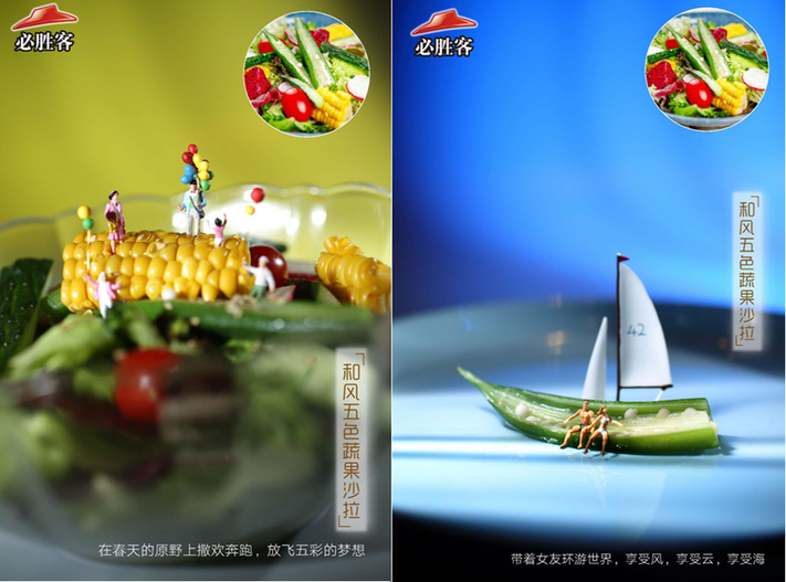 在深圳,必勝客更是腦洞大開,在最新的2018春季菜單,用迷你人偶結(jié)合旅游的場景進行創(chuàng)意拍攝。天馬行空的想象,獨特的視角,妙趣橫生,讓人領(lǐng)略美妙“風景”的同時,不禁食指大動。