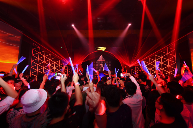 身處黑暗的嘉賓們被突如其來的激光音浪挑起了體內(nèi)的好奇因子。隨著馬爹利名士派對列車的橫空出世,一切派對規(guī)則和框架都被打破。明暗、動靜的瞬間變換讓嘉賓們的感官受到了巨大沖擊,源源不斷的派對好奇心釋放出無邊想象力,所有人對派對的認識被刷新。在干邑香氣與變幻燈光中,嘉賓們或在深邃神秘的“海底世界”與美人魚共舞,或在“冰山世界”的清冷氣息中回歸純凈淡然,或在“火山世界”盡情釋放派對火熱能量,或在“未來世界”中來一次想象之旅。帶有金燕標識的專屬手環(huán)也隨著周身環(huán)境不斷變換色彩,讓嘉賓們身體力行地探索馬爹利名士所締造出的奇妙世界。