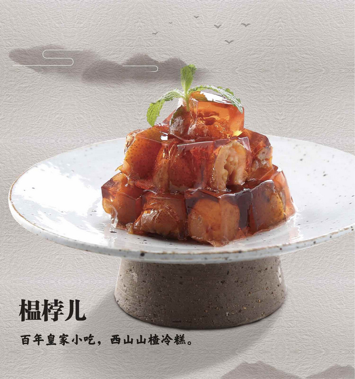 此名相傳為慈禧太后所賜,是她十分喜愛的小零嘴兒。榅桲與山楂外形相似,實(shí)則不同。它是山楂的一種,外體為紅色,更為小巧。梧桐餐廳在制作時(shí)也保證了北京傳統(tǒng)。選好果子后,先要焯水,并將水拋掉,否則有苦澀味,焯完的果實(shí)要扒皮,扒下來的皮和果肉可以一起先炒后煮。煮好的榅桲再經(jīng)發(fā)酵、冷卻,成品榅桲湯晶瑩剔透,果實(shí)軟爛甜糯,吃后不倒牙,且能長期保存,不會(huì)腐敗。
