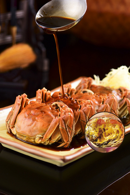 鋪上蟹肉蟹黃熬制而成的蟹粉